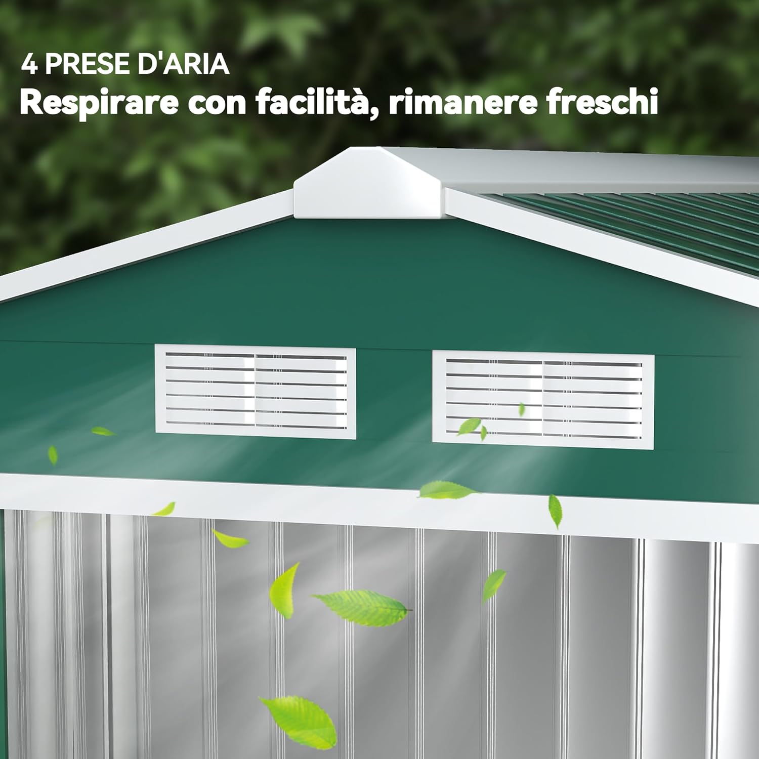 - BUONA VENTILAZIONE: Il nostro ripostiglio da giardino è dotato di 4 prese d'aria sulla parte anteriore e posteriore, che permettono all'aria di circolare all'interno per evitare l'umidità e la muffa.