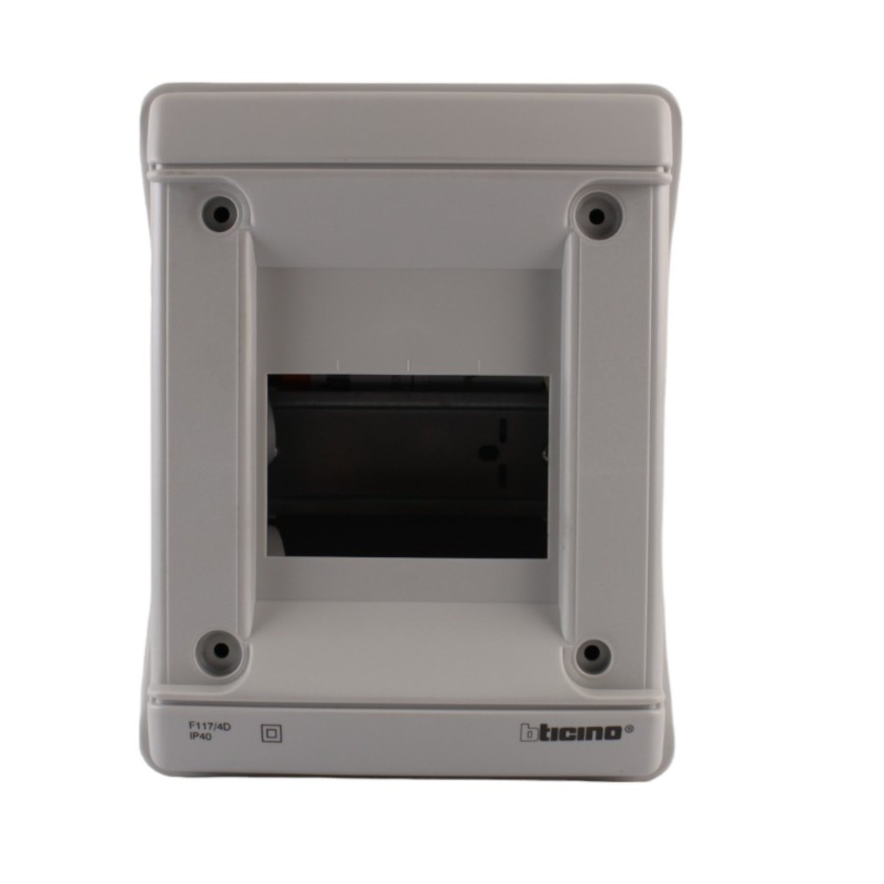 E' una scatola di derivazione utilizzata per contenere e proteggere componenti elettrici come interruttori, prese e altri dispositivi modulari. È realizzato in plastica resistente e ha un grado di protezione IP40, che lo rende adatto per uso interno in ambienti polverosi.