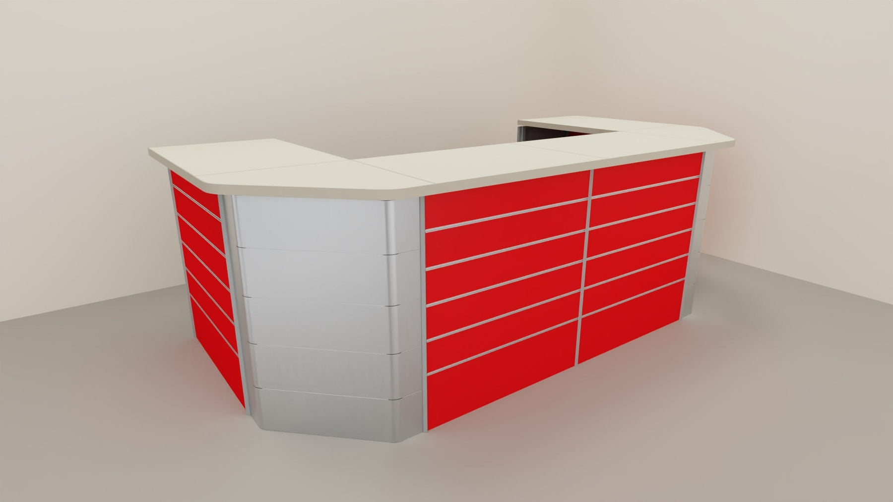 Nome: banco vendita dritto con struttura metallica Dotazioni di serie: n° 1 banco vendita Caratteristiche del prodotto:- banco cassa lineare composto da struttura metallica- lato al pubblico chiusura con pannello dogato in MDF verniciato- lato operatore aperto con piano di base fisso + n° 1 piano regolabile in altezza (colore alluminio)- fianchi metallici lisci verniciati colore alluminio- completo di piano superiore in nobilitato colore canapa spessore mm. 38 con bordo ABS- assemblaggio facile e veloce grazie al sistema completamente ad incastro (senza viti)Dimensioni esterne (LXPXH) cm.: 156x156x106hColore: pannellature frontali a scelta dal menù a tendina; angolo alluminio;Installazione: in kit di montaggio con pratiche istruzioniConformità: UNI EN ISO 9001:2008 - 14001:2004 - OHSAS 18001:2007Tempi di approntamento: affidato al corriere in 10-15 gg. lavorativi circaTempi di consegna del corriere: 2-5 gg. lavorativi / 5-7 gg. lavorativi per Isole dall'affidamento al corriereDestinazione d’uso: interno, industria, negozioInformazioni utili: moduli angolari, cassetto in nobilitato con chiusura a chiave, portina "va a e vieni" in laminato, vetrina per banco acquistabili nei prodotti correlati in fondo alla pagina.PER REALIZZARE LA COMPOSIZIONE DEL BANCONE DESIDERATA AGGIUNGERE LA QUANTITÀ AL MODULO SINGOLO DA CM. 92x64x106h DISPONIBILE TRA I PRODOTTI CORRELATIDettagli aggiuntivi o richieste dovranno essere inserite nelle NOTE dell’ordine o inviate ad info@castellanishop.it