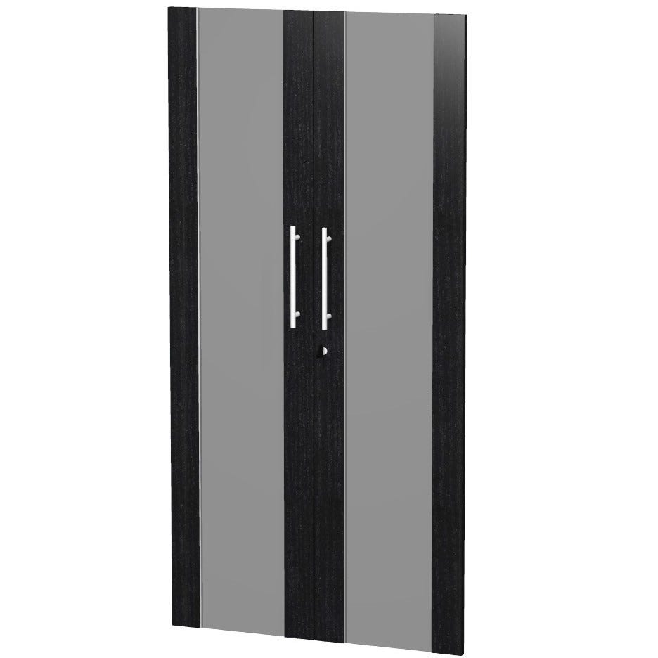 Coppia di ante in vetro temperato fumè per mobile alto con serratura  Con maniglieCm. 80x153,8hSpessore 1,8 cmCon profilo in melaminico FORNITA COMPLETAMENTE SMONTATAAccompagnata da pratiche istruzioni utili per il montaggio e di tutti gli accessori COLORE ANTE: nero venato frassino, ciliegio arabis