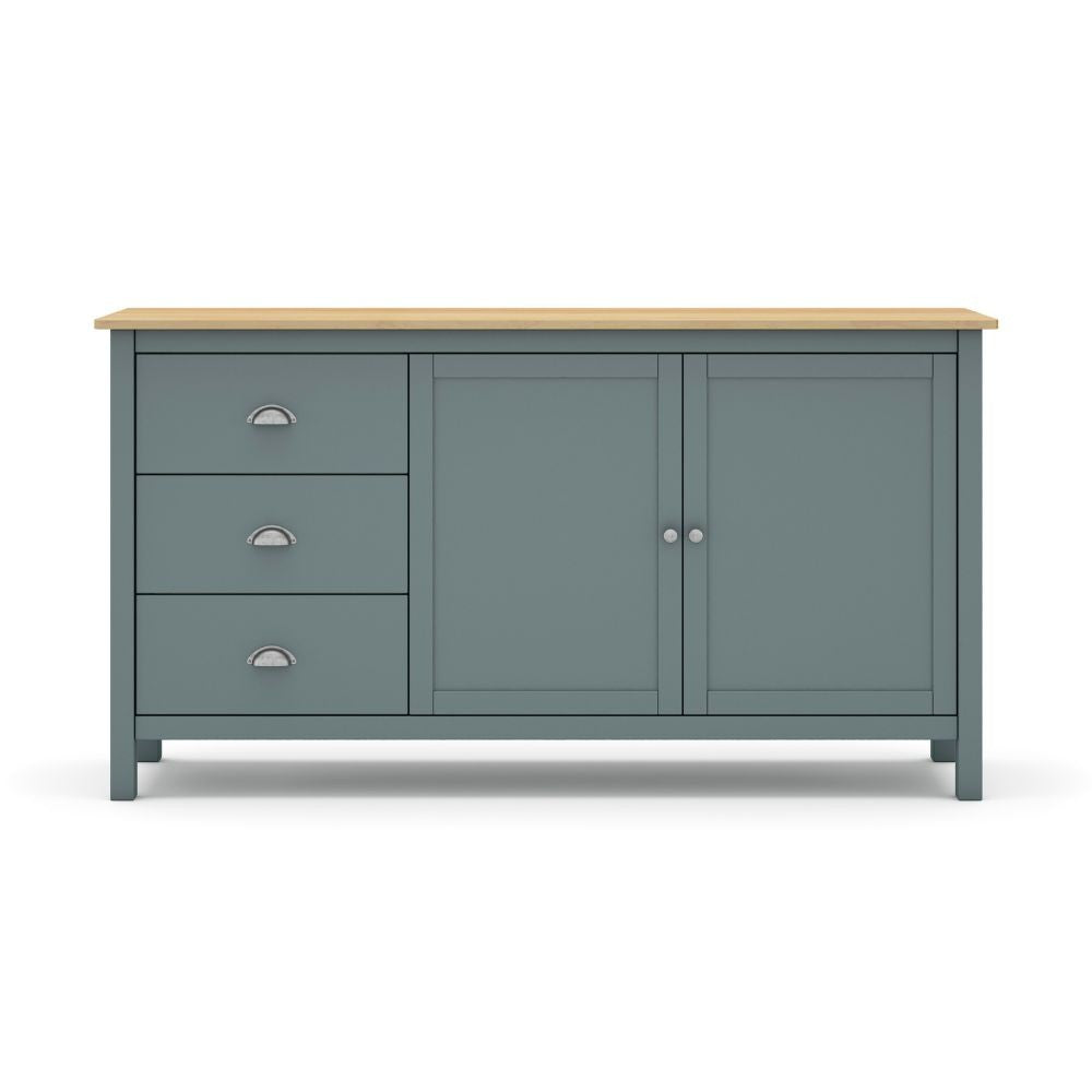 Credenza Misti 2 ante e 3 cassetti in legno massiccio verde khaki e rovere