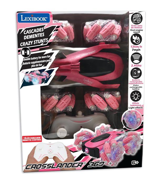 Crosslander 360+ - Auto telecomandata fuoristrada rosa luminosa, programmabile e ricaricabile.