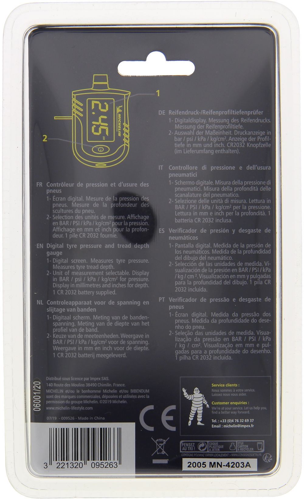 Regolatore di pressione di prossima generazione + misurazione della profondità dei pneumatici Display digitale Visualizzazione della pressione dei pneumatici in BAR (0,35-> 7bar) con una precisione di lettura di 0,01 bar. Visualizzazione della profondità della scanalatura dei pneumatici in mm. Batterie fornite.