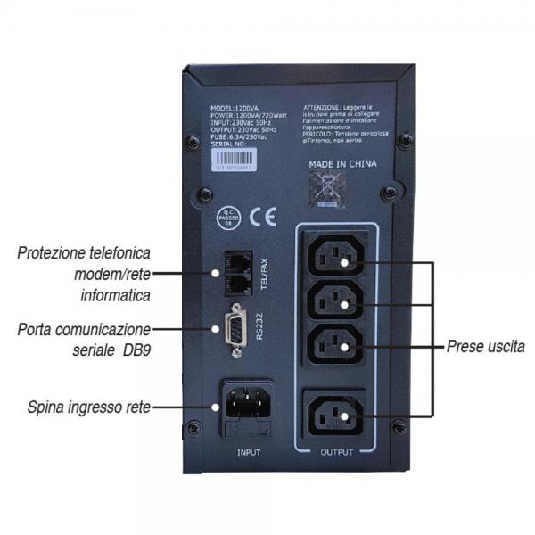 | Cavi inclusi | Cavo di alimentazione di ingresso, Cavo di alimentazione di uscita, Cavo Telefonico (RJ-11), Cavo USB |