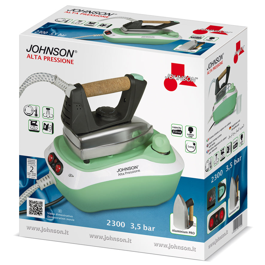 Alta pressione è il sistema stirante pratico e affidabile con cui stirare non sarà più un incubo.Il ferro con manico ergonomico in sughero e piastra in alluminio, abbinato a una capiente caldaia in alluminio garantiscono risultati sempre perfetti e una lunga autonomia di stiratura.Il ferro è dotato di manopola per accensione/spegnimento e regolazione temperatura per una stiratura sempre perfetta.Alta pressione inoltre produce vapore ad alta pressione, 3.5 Bar, in pochi minuti così da essere pronto in ogni momento.Vapore anche in verticale sempre alla massima potenza.Dati tecnici:• Macchina da stiro a vapore con caldaia in alluminio• Ferro di tipo professionale con piastra in alluminio• Caldaia in acciaio• Capacità massima: 850 ml• Manopola regolazione temperatura• Protezione anti-surriscaldamento• Spia luminosa “pronto vapore”• Base appoggia ferro con gommini in silicone• Potenza ferro: 550 W• Potenza caldaia: 1250 W• Getto di vapore: 50 g/min• Pronto vapore in 2 minuti• Pressione caldaia: 3.5 bar (350Kpa)• Doppi interruttori per accensione ferro e caldaia• Alimentazione: 220 – 240V~ 50/60 Hz