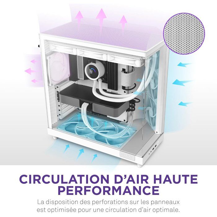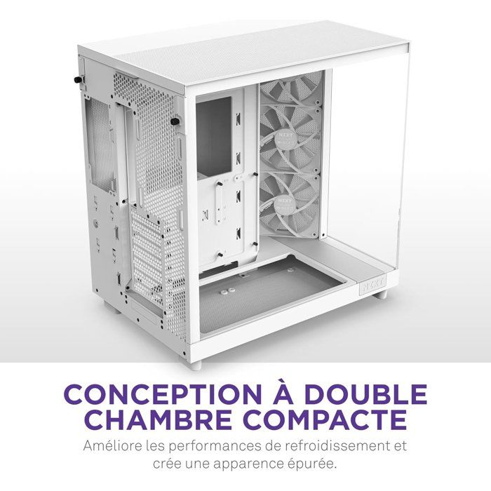 Caja de torre media NZXT - H6 Flow - Doble cámara - Refrigeración por aire - Blanco