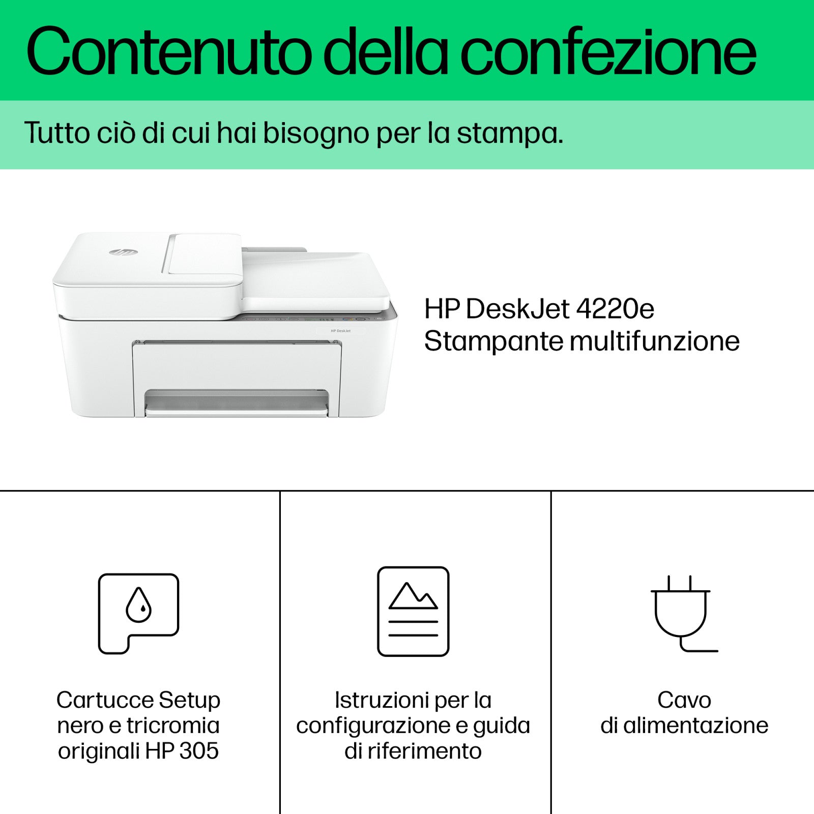 HP DeskJet 4220e: Multifunzione Wi-Fi a colori con Instant Ink. Ideale per la casa, stampa, copia e scansiona con facilità.