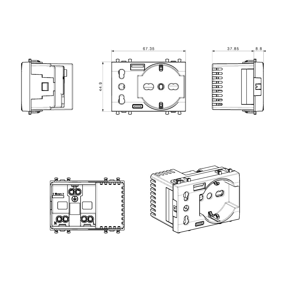 • Multipresa Schuko + italiana + USB-A + USB-C™