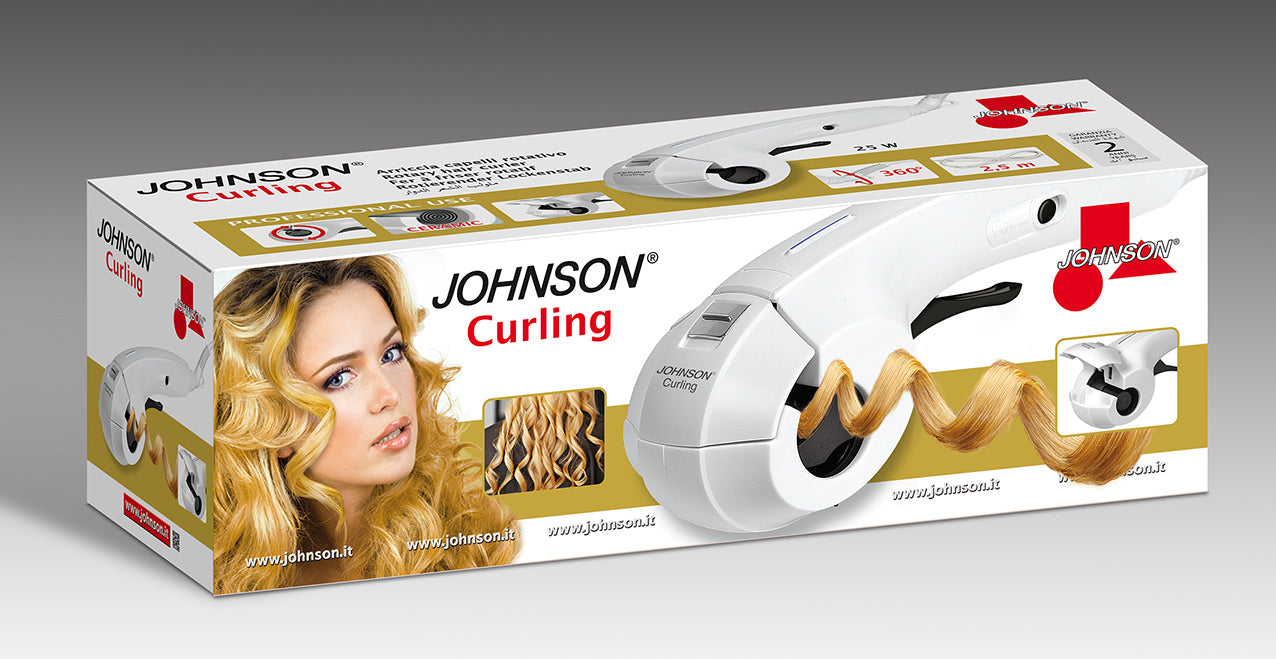 Arricciacapelli RotativoJohnson Curling è il rivoluzionario arricciacapelli automatico che permette di creare onde e ricci perfetti in modo semplice e veloce. Per ottenere acconciature invidiabili bastano pochi e semplici gesti: è sufficiente selezionare una ciocca di capelli, la quale viene aspirata automaticamente all’interno della camera in ceramica e qui viene delicatamente trattenuta e riscaldata in ogni sua parte. Una volta liberata la ciocca, questa si trasforma in un magnifico riccio elastico, brillante e perfettamente definito!Potenza: 25 W – Indicatore Luminoso – Rapido riscaldamento in meno di 3 minuti – Cavo Piroettante ad alta resistenza termica da 2,5 mElemento Riscaldante in CeramicaColore: Bianco, Azzurro Acqua.