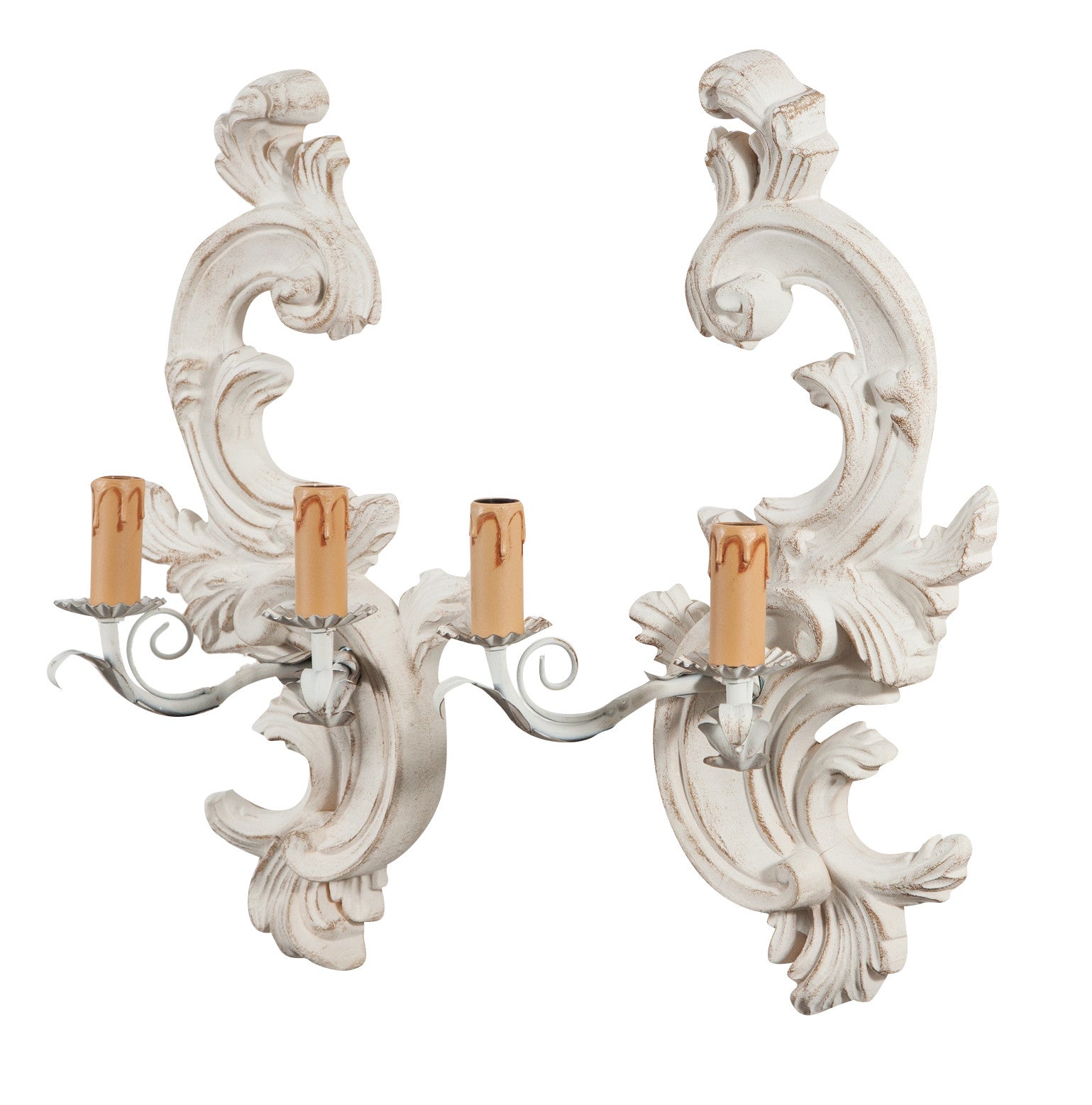 Biscottini Biscottini Coppia Applique 2 Luci Legno Decapato Ferro Bianco Anticato Shabby