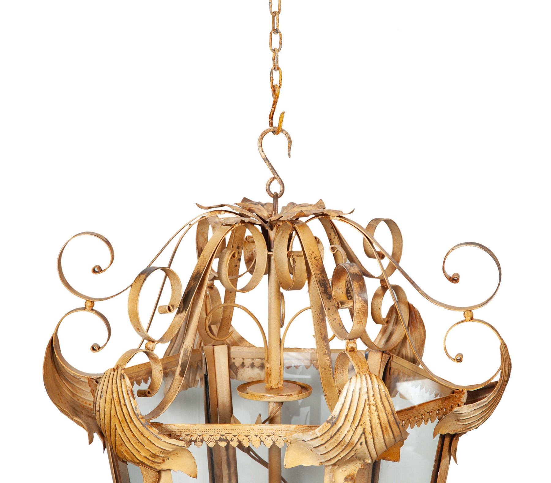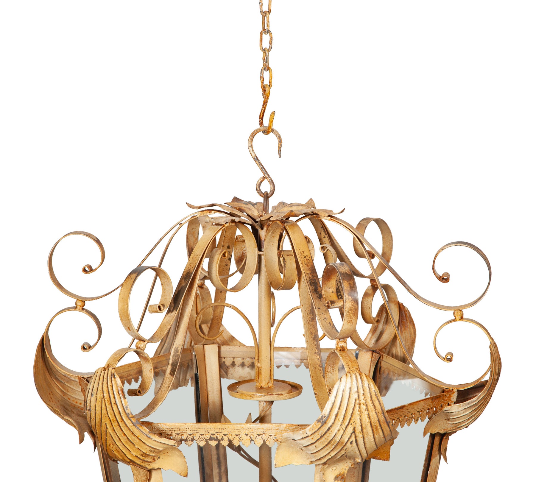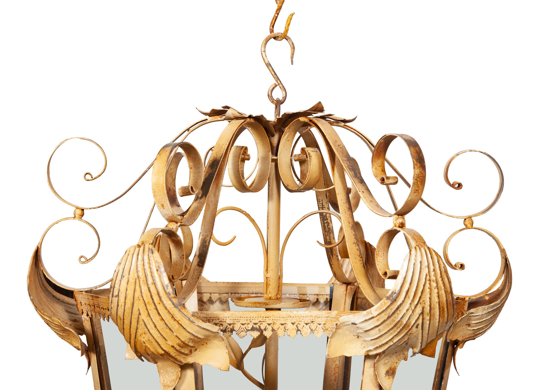 Biscottini Biscottini Lanterna Lampadario Soffitto Ferro Battuto Crema Anticata 60x60x140