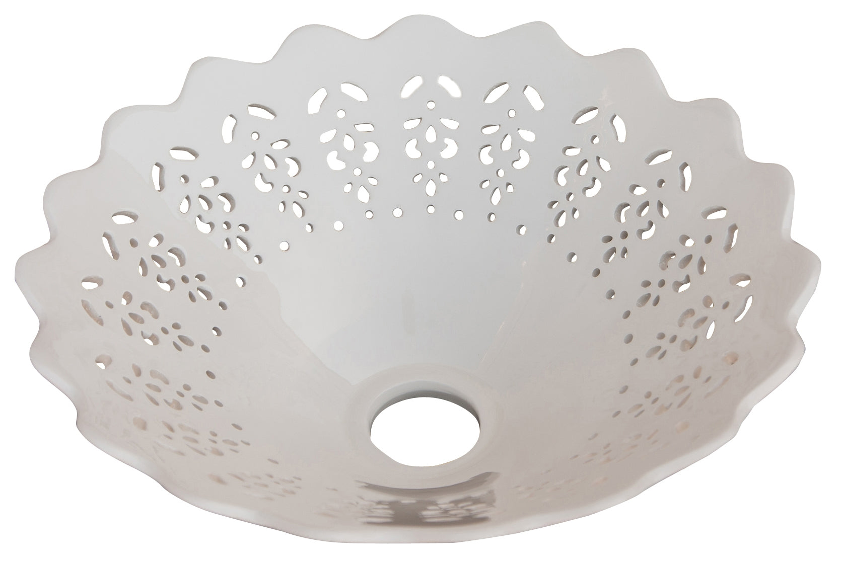 Questo piatto paralume si distingue per la sua costruzione robusta e il design senza tempo. La ceramica bianca, oltre a essere esteticamente gradevole e versatile per qualsiasi stile di arredamento, garantisce una notevole durabilità e facilità di pulizia, mantenendo inalterata la sua bellezza nel tempo. La lavorazione traforata non è solo un vezzo estetico, ma contribuisce a una diffusione della luce più morbida e decorativa, evitando abbagliamenti diretti e creando ombre suggestive sulle pareti e sui soffitti. È particolarmente indicato per chi desidera personalizzare o restaurare le proprie fonti luminose, siano esse lampadari a sospensione, applique a muro o piantane da terra. La versatilità di questo piatto paralume lo rende compatibile con un'ampia gamma di stili d'arredamento, dal classico al moderno, dal rustico al contemporaneo. Che tu stia cercando di sostituire un componente danneggiato o semplicemente di dare un nuovo look a un vecchio apparecchio di illuminazione, questo articolo rappresenta la scelta ideale per un tocco di eleganza.