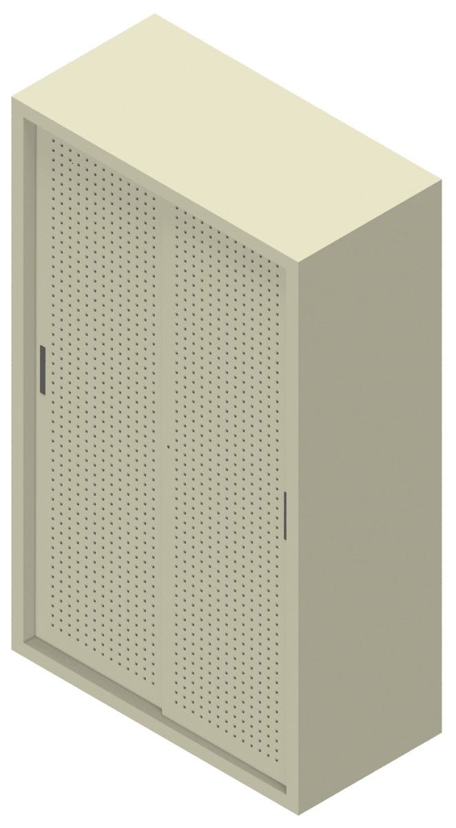 Nome: armadio per archiviazione ad ante scorrevoli Dotazioni di serie: n° 1 armadio per archiviazione Caratteristiche del prodotto: - n° 4 piani metallici regolabili - ante in lamiera forata - i fori disposti in modo regolare lungo le ante forniscono un motivo grafico oltre a consentire una migliore aerazione degli interni- dimensioni foro cm. 1x1- distanza tra i fori cm. 2,5- distanza fine fori perimetrale cm. 9 - serratura compresa Dimensioni esterne (LXPXH) cm.: 120x60x200hDimensioni interne (LXPXH) cm.: 119,5x51x190 Colore: a scelta dal menù a tendina Installazione: in kit di montaggio con pratiche istruzioni Conformità: - Tempi di approntamento: affidato generalmente al corriere in 15 gg. lavorativi circa Tempi di consegna del corriere: 2-5 gg. lavorativi / 7 gg. lavorativi per Isole dall'affidamento al corriere Destinazione d’uso: interno Informazioni utili: - Dettagli aggiuntivi o richieste dovranno essere inserite nelle NOTE dell’ordine o inviate ad info@castellanishop.itSU RICHIESTA E' POSSIBILE RICHIEDERE IL KIT PER L'ANCORAGGIO A PARETE DELL'ARMADIO (INDICARE ALL'INTERNO DELLE NOTE IN FASE DI CONFERMA ORDINE)