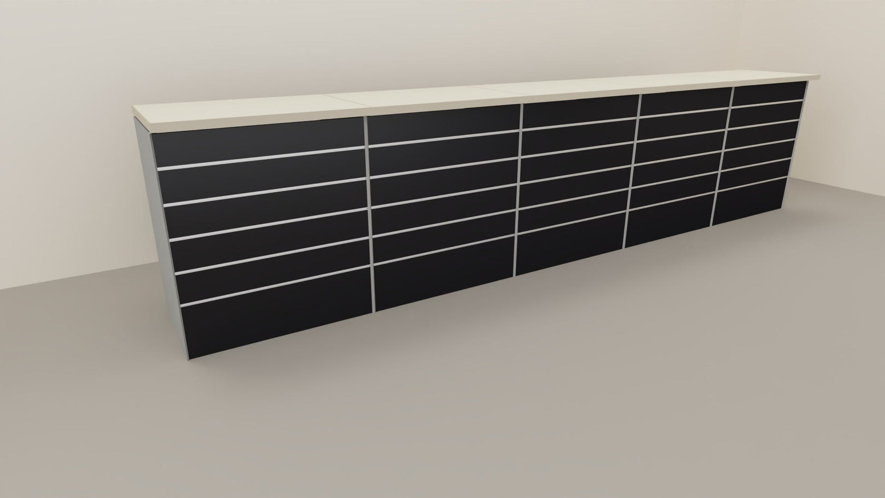 Nome: banco vendita dritto con struttura metallica Dotazioni di serie: n° 1 banco vendita Caratteristiche del prodotto:- banco cassa lineare composto da struttura metallica- lato al pubblico chiusura con pannello dogato in MDF verniciato- lato operatore aperto con piano di base fisso + n° 1 piano regolabile in altezza (colore alluminio)- fianchi metallici lisci verniciati colore alluminio- completo di piano superiore in nobilitato colore canapa spessore mm. 38 con bordo ABS- assemblaggio facile e veloce grazie al sistema completamente ad incastro (senza viti)Dimensioni esterne (LXPXH) cm.: 460x64x106hColore: pannellature frontali a scelta dal menù a tendinaInstallazione: in kit di montaggio con pratiche istruzioniConformità: UNI EN ISO 9001:2008 - 14001:2004 - OHSAS 18001:2007Tempi di approntamento: affidato al corriere in 10-15 gg. lavorativi circaTempi di consegna del corriere: 2-5 gg. lavorativi / 5-7 gg. lavorativi per Isole dall'affidamento al corriereDestinazione d’uso: interno, industria, negozioInformazioni utili: moduli angolari, cassetto in nobilitato con chiusura a chiave, portina "va a e vieni" in laminato, vetrina per banco acquistabili nei prodotti correlati in fondo alla pagina.PER REALIZZARE LA COMPOSIZIONE DEL BANCONE DESIDERATA AGGIUNGERE LA QUANTITÀ AL MODULO SINGOLO DA CM. 92x64x106h DISPONIBILE TRA I PRODOTTI CORRELATIDettagli aggiuntivi o richieste dovranno essere inserite nelle NOTE dell’ordine o inviate ad info@castellanishop.it