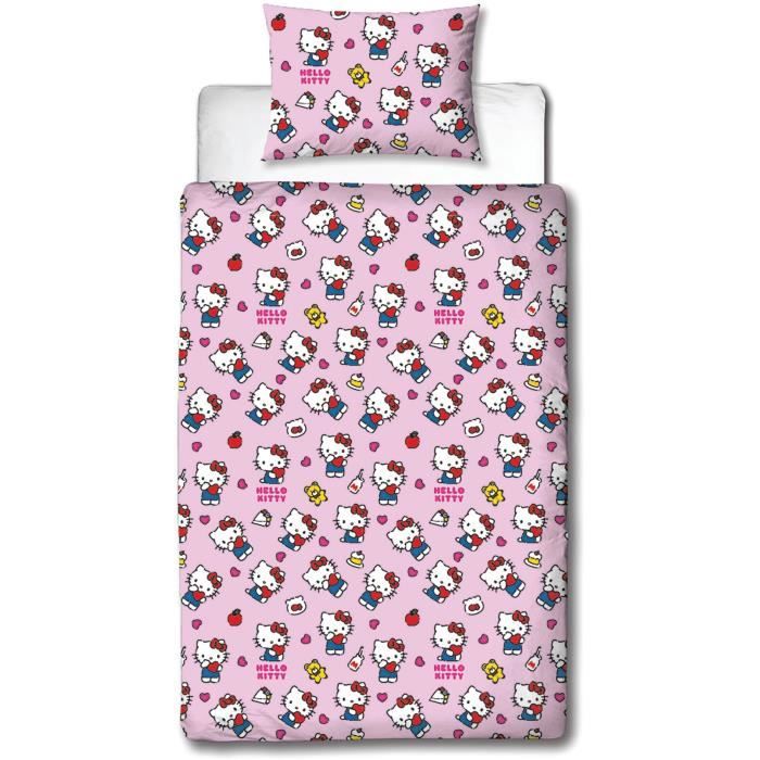 Completo letto reversibile - HELLO KITTY - Microfibra - 1 copripiumino 140 x 200 cm + 1 federa 63 x 63 cm