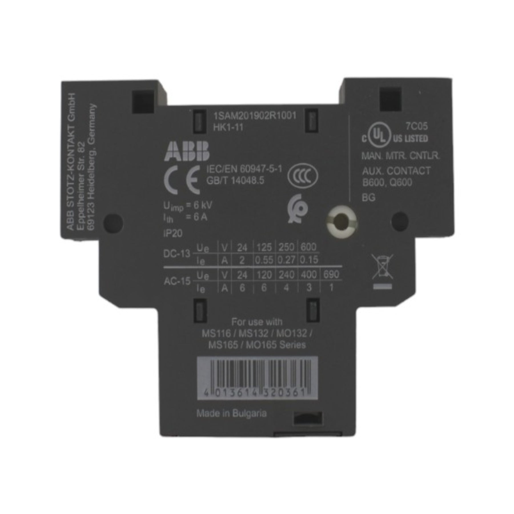 Contatto ausiliario laterale 1NA+1NC per serie MS116 ABB