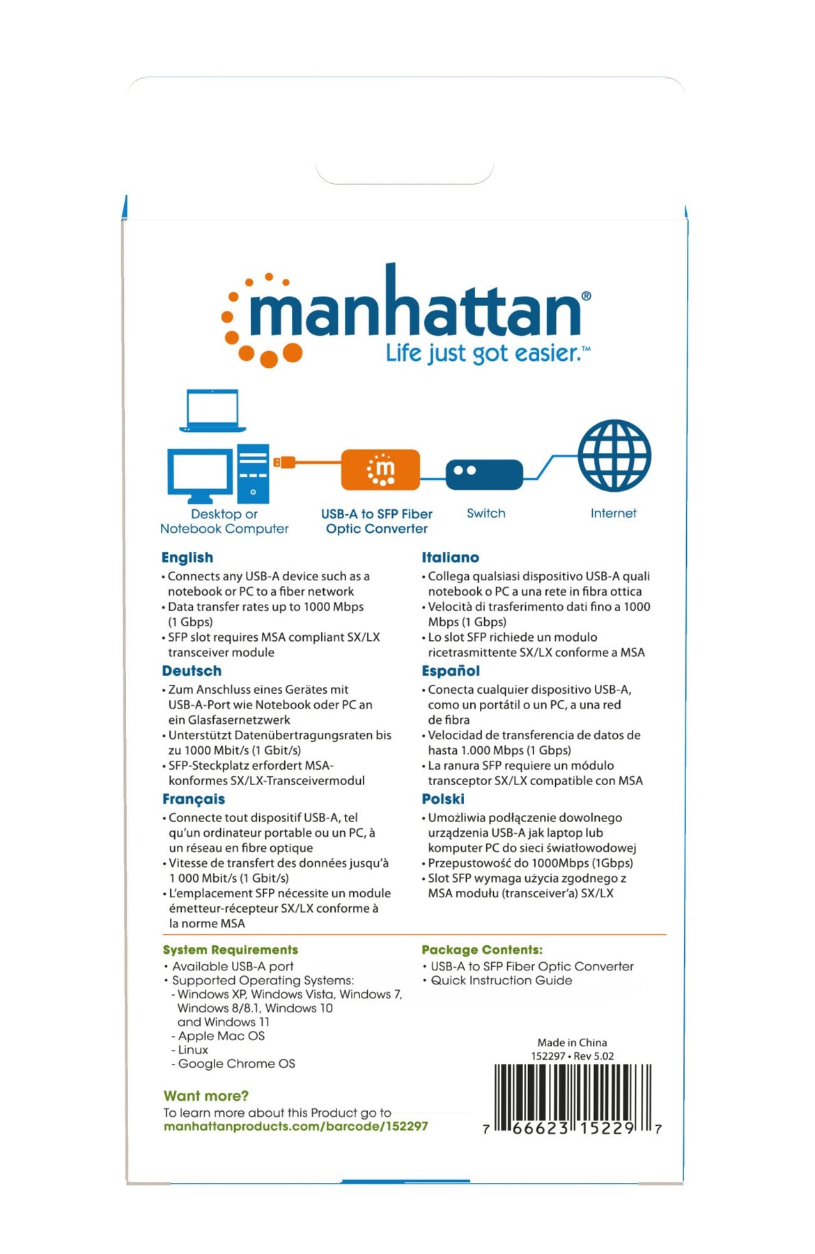 Convertitore USB-A a Fibra Ottica SFP