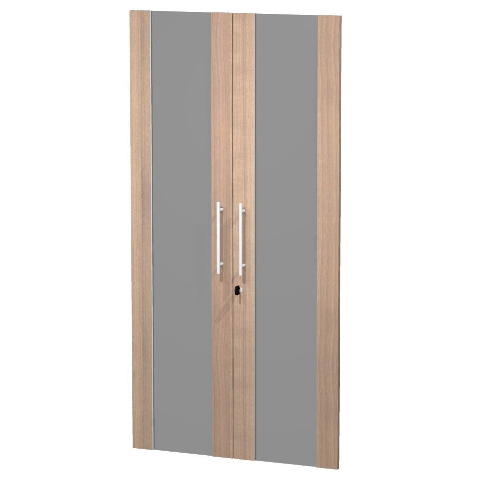 Coppia di ante in vetro temperato fumè per mobile alto con serratura  Con maniglieCm. 80x153,8hSpessore 1,8 cmCon profilo in melaminico FORNITA COMPLETAMENTE SMONTATAAccompagnata da pratiche istruzioni utili per il montaggio e di tutti gli accessori COLORE ANTE: nero venato frassino, ciliegio arabis