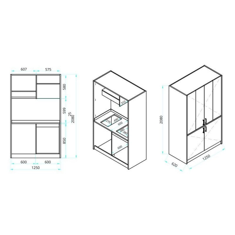 Dimensioni : H 208 x P 62 x L 125 cm.