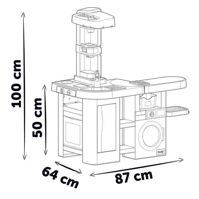 La cucina Clean Tefal è il gioco di imitazione definitivo! Questa cucina, inclusa un'area per le pulizie, piacerà senza dubbio ai tuoi bambini, che potranno giocare da soli o con gli amici. Diverse aree sono state progettate per far durare il gioco: lavello con rubinetto, forno, frigorifero, cappa, macchina per il caffè, macchina per bibite,
