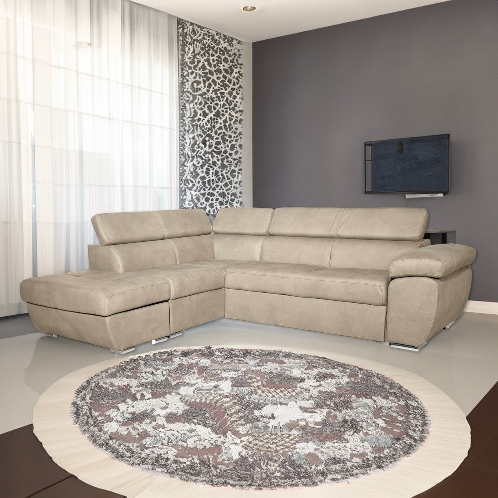 Divano Fiona angolare con penisola sinistra in tessuto Barrel09 cappuccino