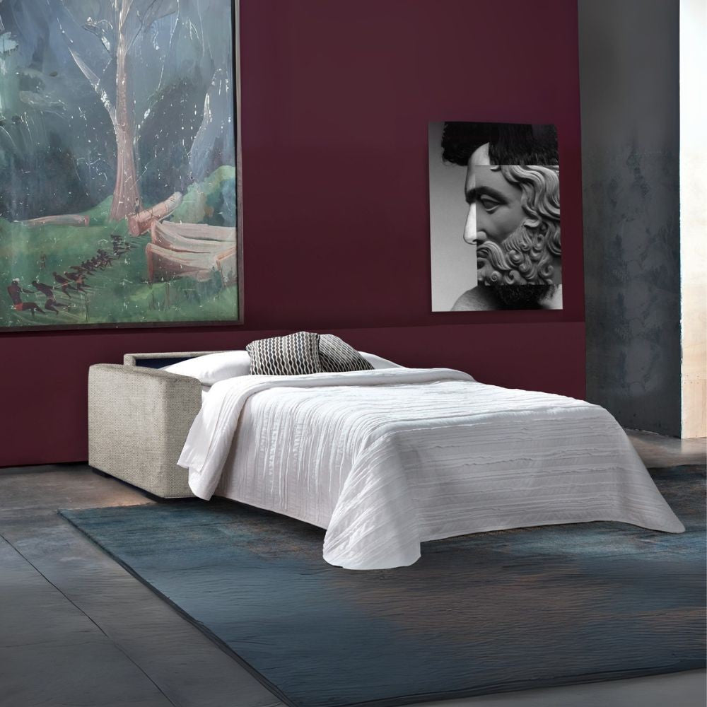 Divano letto 3 posti Era con rete elettrosaldata materasso 20 cm in tessuto Aragon 20 tortora