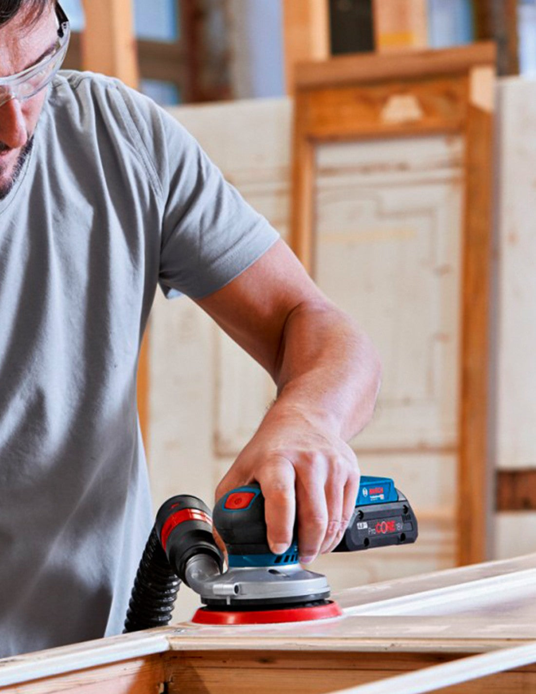 Levigatrice Roto-orbitale BOSCH GEX 18V-125 Professional- La Levigatrice Roto-orbitale GEX 18V-125 Professional consente un ottimale controllo dell’utensile, soprattutto su ampie superfici- L’eccellente bilanciamento vicino al pezzo in lavorazione e l’ideale ergonomia dell’appoggio palmare e dell’impugnatura assicurano un ottimale controllo dell’utensile- Il motore brushless e il Bosch Professional 18V System assicurano un rapido avanzamento del lavoro e maggiore durevolezza- Semplice ed intuitiva da usare.- Concepita per lavori di levigatura di livello semplice ed intermedio, rimozione di vernici e finitura di superfici- Utilizzabile su legno, impiallacciati, vernice e stucco, nonché su superfici minerali ed acriliche- Offre inoltre un sacco raccoglipolvere, preselezione del numero di giri e un platorello da 125 mm con sistema di fissaggio a strappo per fogli abrasivi- Compatibile il Professional 18V System e con il sistema di aspirazione Click & Clean Bosch