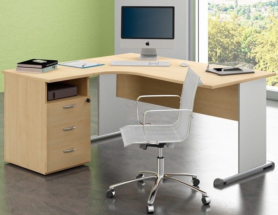 Nome: scrivania angolare con cassettieraDotazioni di serie: n° 1 scrivania; n° 1 cassettieraCaratteristiche del prodotto:- materiale melaminico in finitura antigraffio e antiriflesso in classe E1- bordature dei piani con abs in spessore cm. 2,2 con assenza di spigoli vivi- scrivania cm. 160 (L) con piano e gambe in melaminico- cassettiera su piedini a n° 3 cassetti e n° 1 vano a giornoDimensioni esterne (LXPXH) cm.: 160x80/143x72hColore: noce chiaro, faggio, nero venato frassino o grigio a scelta dal menù a tendinaInstallazione: in kit di montaggio con pratiche istruzioniConformità: ISO 9001:2008Tempi di approntamento: affidato al corriere in 2-4 gg. lavorativi dalla ricezione del pagamento, salvo esaurimento scorteTempi di consegna del corriere: 2-5 gg. lavorativi / 7 gg. lavorativi per Isole dall'affidamento al corriereDestinazione d’uso: internoInformazioni utili: -Dettagli aggiuntivi o richieste dovranno essere inserite nelle NOTE dell’ordine o inviate ad info@castellanishop.it