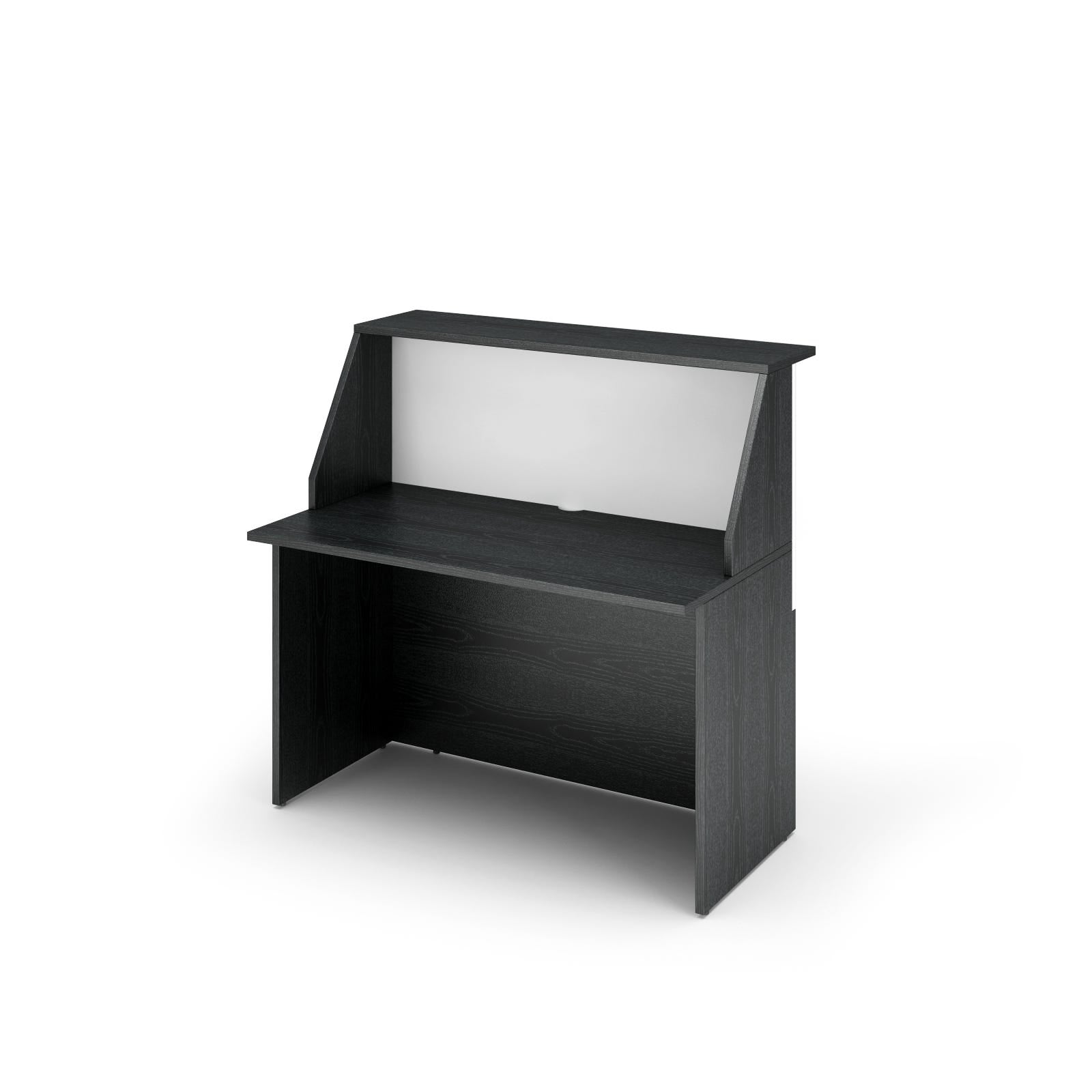 Nome: bancone modulo receptionDotazioni di serie: n° 1 bancone  Caratteristiche del prodotto: - pannello nobilitato melaminico- sopralzo di dimensioni cm. 120x30x2,2- fianchi inferiori di dimensioni cm. 50x68,8h e di spessore cm. 1,8- fianchetti di separazione cm. 35x42,8h e di spessore cm. 1,8- spazio tra piano di lavoro e top superiore cm. 42,8- scrivania cm. 120x60x2,2Dimensioni esterne (LXPXH) cm.: 120x76,1x117hColore: bianco, nero venato frassino e bianco o ciliegio arabis e bianco a scelta dal menù a tendina  Installazione: in kit di montaggio  Conformità: pannelli in classe E1 certificati FSC e PEFC, certificazione Green Home, ISO 9001Tempi di approntamento: affidato al corriere in 2-4 giorni lavorativi Tempi di consegna del corriere: 2-5 gg. lavorativi / 7 gg. lavorativi per isole dall'affidamento al corriere Destinazione d’uso: interno Informazioni utili: -   Dettagli aggiuntivi o richieste dovranno essere inserite nelle NOTE dell’ordine o inviate ad info@castellanishop.it