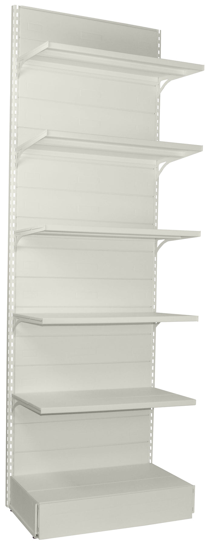 Nome: scaffalatura da negozio a parete 503050BIDotazioni di serie: n° 1 scaffalatura completaCaratteristiche del prodotto: scaffalatura metallica da negozio, modulo a parete composta da:- n° 2 montanti H cm. 288 asolatura frontale passo cm. 4,5- n° 1 piano di base di cm. 100x50- n° 5 piani con mensole regolabili in altezza di cm. 100x50- n° 1 zoccolo di rifinitura frontale antipolvere- n° 1 coppia di piedi - n° 1 schiena a doghe predisposta per l'attacco dei blister- n° 2 grappe di fissaggio al muro- portata per piano a carico uniformemente distribuito: 50 kg- verniciatura a polveri epossipoliestere con finitura goffrata di spessore medio 60/80 micron- montanti di sezione cm. 4,5x4 ricavati dalla profilatura a freddo di nastro di acciaio di spessore 18/10 di mm.Dimensioni (LXPXH) cm.: ingombro 105x56,5x291; misure utili cm. 100x50x288Colore montanti, piedi e zoccolo: bianco RAL 9010Colore piani e schiena: bianco RAL 9010Installazione: in kit di montaggio con pratiche istruzioni; assemblaggio facile e veloce grazie al sistema completamente ad incastroConformità: ISO 9001 - ISO 14001 – OHSAS 18001; omologazioni e certificazioni come da allegato PDFTempi di approntamento: affidato al corriere in 5-10 gg. lavorativi circaTempi di consegna del corriere: 2-5 gg. lavorativi / 7 gg. lavorativi per Isole dall'affidamento al corriereDestinazione d’uso: interno, magazzino, ufficioInformazioni utili: PER PROSEGUIRE LA SCAFFALATURA FARE RIFERIMENTO AL RELATIVO MODULO AGGIUNTIVO LINEARE O ANGOLARE,VISUALIZZABILE A FONDO PAGINA NEI PRODOTTI ASSOCIATI;completamente ACCESSORIABILE con prodotti associati a fine pagina, come piani aggiuntivi, ganci portablister, portaprezzi, battuta frontale per posizionamento inclinato del piano e molto altro